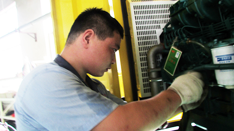 的確,熟能生巧,每一臺柴油發電機組的檢驗程序都是很復雜的,這包括柴油機性能的綜合檢驗,如:轉速、水溫、油溫,發電機滿負荷運行的狀態和極限。但對于他們而言,由于長期做這樣的工作,就干的熟練。熟練的試車技巧加上認真負責的態度,這大大提高了他們的工作效率和工作水平。很少從客戶方面得到質量原因的不良反饋。然而,并不是因為熟練,工作就輕松了。責任、安全還是需要時刻緊繃的弓弦。柴油機飛車是柴油發電機組試車時容易出現的故障。飛車是指柴油發電機組的轉速高于正常轉速許多,并且不受控制,導致柴油發電機組零部件飛出。這樣容易造成人員傷害,嚴重者會造成增壓器噴火的現象發生。所以,這種故障是很危險的。馬虎就會有危險,工作嚴謹,認真就會杜絕這些危險的發生。華全動力的品質檢驗人員認真負責,有效的將故障發生率降到。