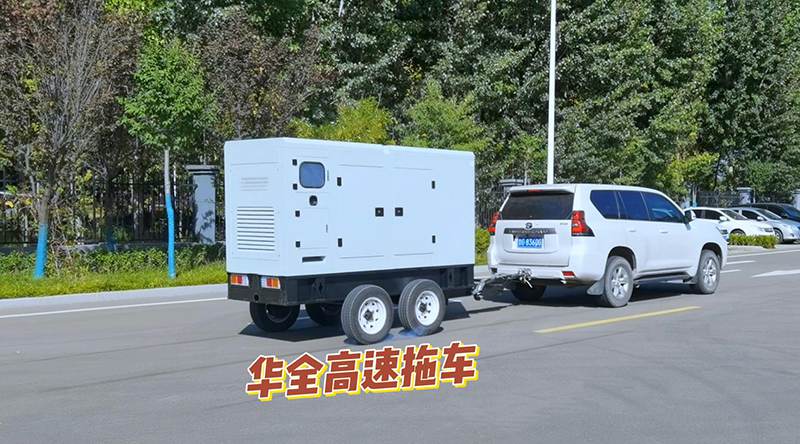 華全電力移動拖車式發電機組,和普通機組最大的區別在于,它可以被機動車拖動,并以每小時80km的速度高速移動,即使在公路上移動也完全不用減速。
