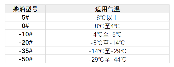 下面這張表格是目前市面上常見的柴油牌號及其使用溫度范圍,根據(jù)當?shù)爻D甑臏囟茸兓x擇柴油,還是很有必要的。